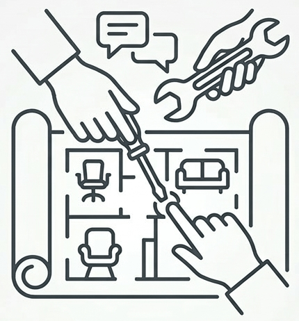 We accompany you from the spark of an initial idea to the final delivery in your home, ensuring the refined experience you deserve. Our services are meticulously designed to meet the unique needs of every household, adding a signature touch of luxury to every corner of your living space.
