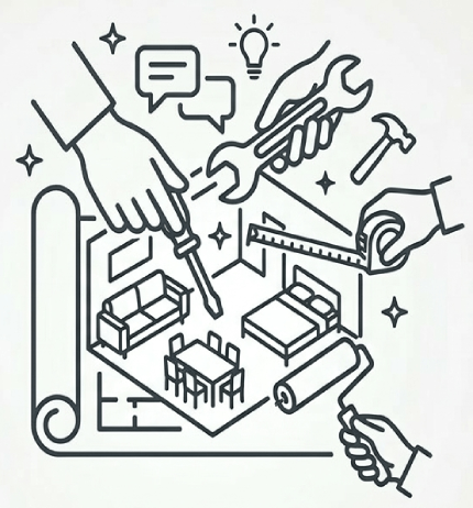 We offer Complete Home Renovation Services, covering everything from bedrooms to living rooms and kitchens. We assist you in selecting contemporary or classic designs tailored to your taste, strategically reconfiguring your furniture layout to refresh the spirit of your home without the need for major construction. Our goal is to transform your current residence into a vibrant, comfortable new space while preserving its unique character.