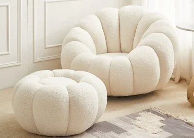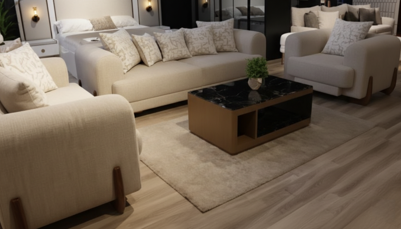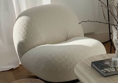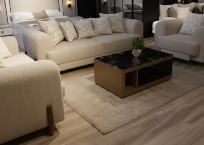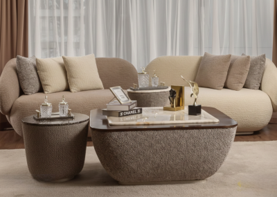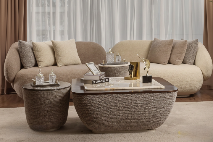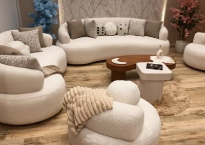نستخدم خامات فاخرة وأقمشة ناعمة لخلق أجواء مريحة تدعو للاسترخاء والسكينة.